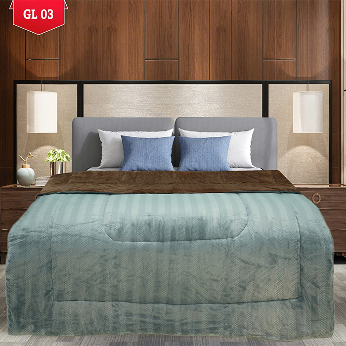 • Thiết Kế Tinh Tế: Dù hình ảnh chỉ hé lộ một phần, chúng ta có thể cảm nhận được sự chăm chút trong từng đường nét. Sự tương phản giữa lớp lông cừu ấm áp và có thể là một lớp vải nền cao cấp  tạo nên một tổng thể hài hòa, vừa giữ ấm tối ưu vừa mang lại vẻ đẹp lịch lãm cho chiếc giường của bạn.