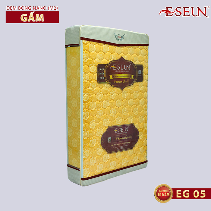 Đệm Eseun Nano Gấm Mẫu EG05 là sự kết hợp hoàn hảo giữa công nghệ sản xuất tiên tiến và chất liệu cao cấp, mang lại trải nghiệm giấc ngủ êm ái, thoải mái cho người dùng. Với lớp vải gấm sang trọng, chất liệu bông tinh khiết được xử lý bằng công nghệ Nano hiện đại, đệm Nano Gấm của Eseun mang đến sự hài hòa giữa vẻ đẹp thẩm mỹ và chất lượng đệm.
